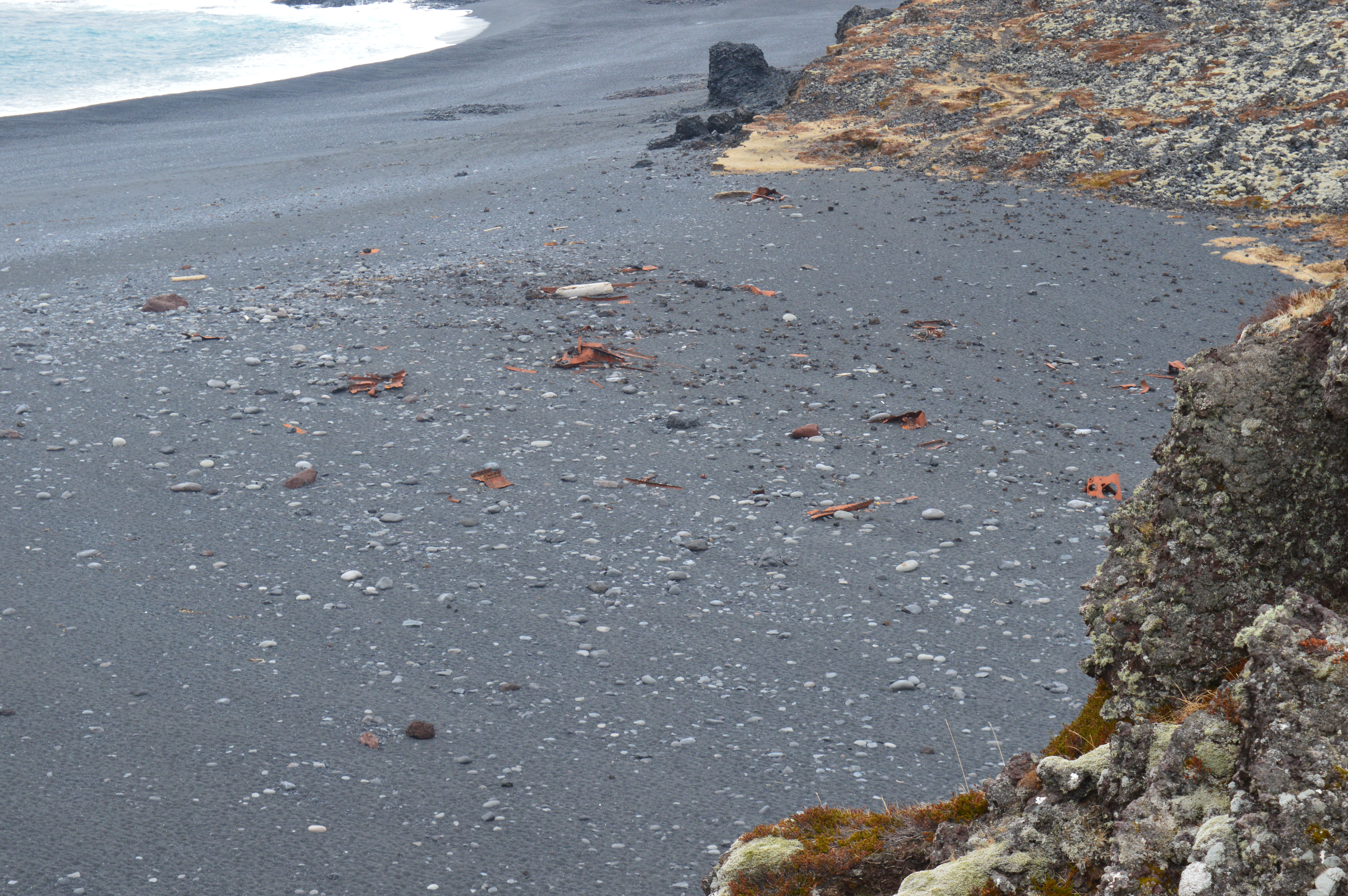 It was smashed to pieces as rescuers fought to save the lives of those on board. Almost 70 years later iron pieces of the boat remain scattered across the beach’s black volcanic sand.