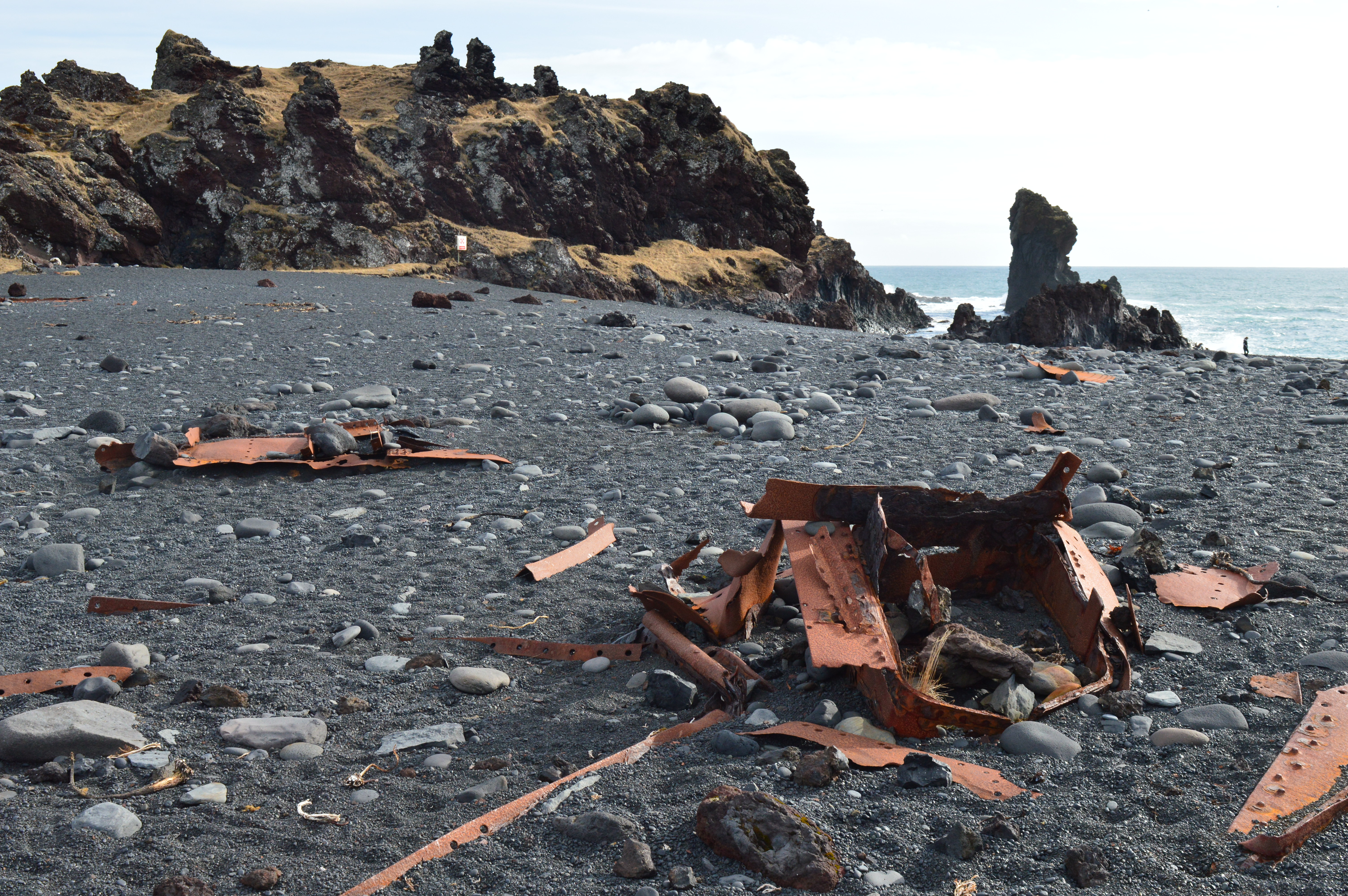 Today, the volcano Snaefells – made famous in Jules Verne’s Journey to the Centre of the Earth – looks down as tourists walk among the pieces of wreck to where the black sand falls away to the water’s edge.